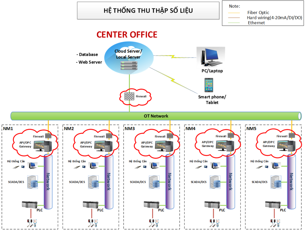 This is a system designed to collect all operational data from machinery and equipment across member factories or different areas within a plant and transmit them to a centralized management center. Its main purpose is to enhance production operation efficiency, establish KPIs, monitor OEE (Overall Equipment Effectiveness), and systematically manage safety-related data for both production and maintenance planning.